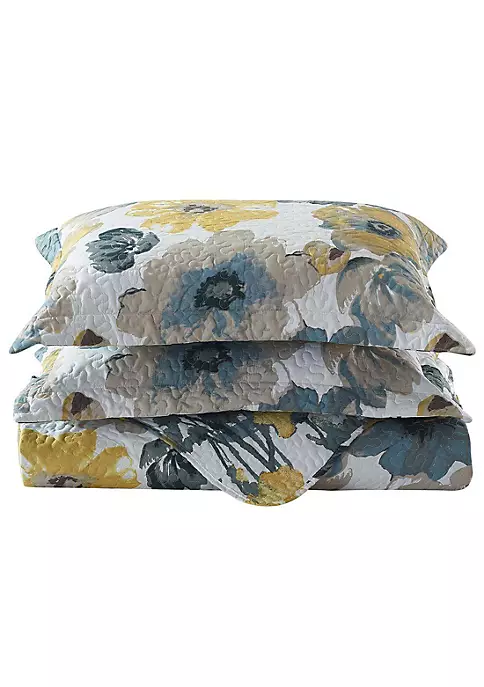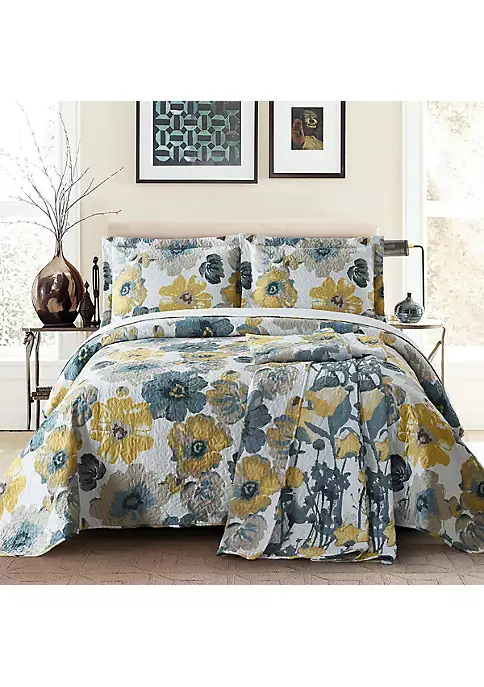 This Leahanna Bedspread Quilt Set brings soothing and relaxing touch to any bedroom, featuring a beautifully vivid and gentle reversible floral design.