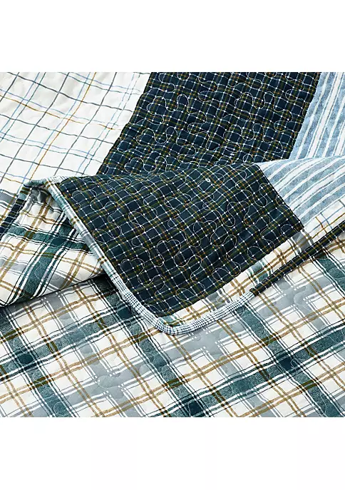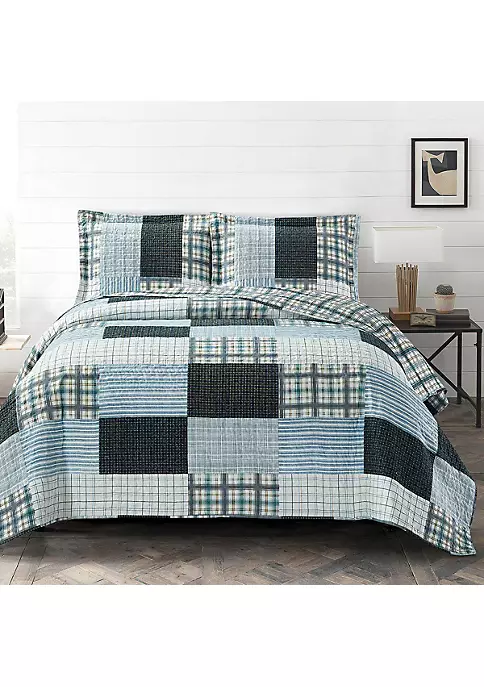 Bring together any rustic decor with the Zoe Reversible Patchwork Quilt Set, finely stitched with four unique patterns of plaids and stripes in blueish hues for a pop of color that’s comforting and soothing, creating a space that’s homely and cozy.